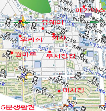 모든 것이 대치4동 북쪽블록 + 인접한 블록내에 있다.